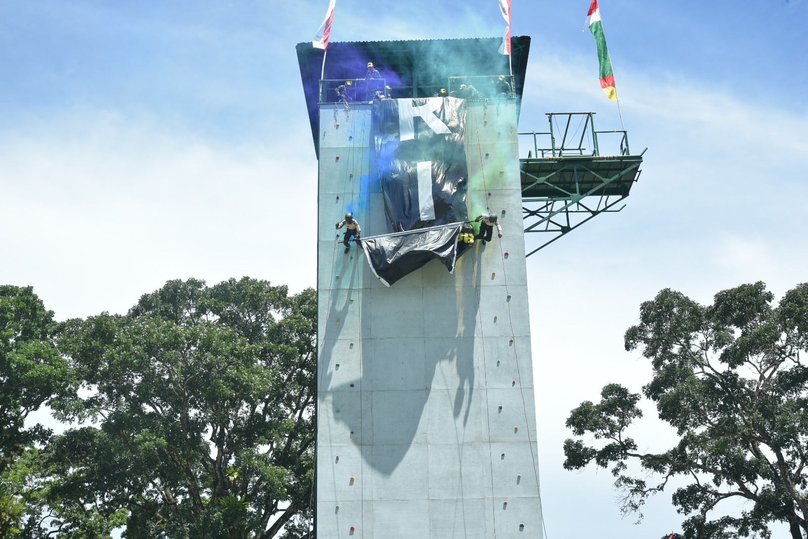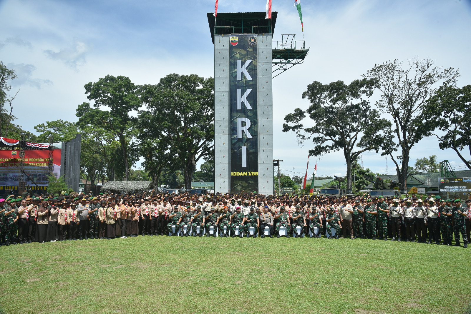 Pangdam I/BB sangat terpukau dalam aksi demonstrasi para kadet terbaik, yang menampilkan atraksi snapling dari Menara Serba Guna sembari membentangkan spanduk bertuliskan “KKRI KODAM I/BB”.