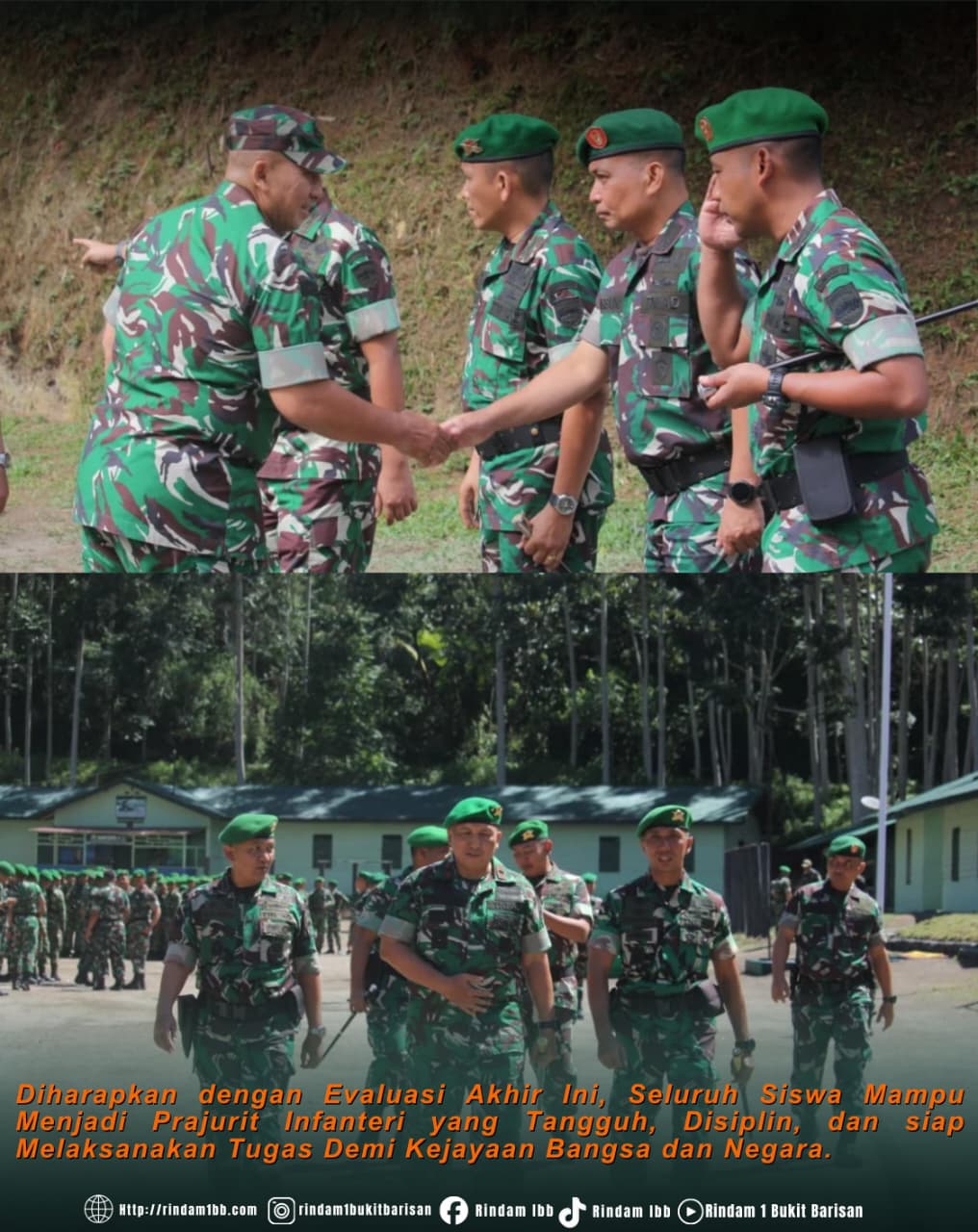 Disamping itu juga pentingnya penguasaan taktik pertempuran, guna mendukung keberhasilan tugas di medan operasi. Diharapkan dengan evaluasi akhir ini, seluruh siswa mampu menjadi Prajurit Infanteri yang tangguh, disiplin, profesional, dan siap melaksanakan tugas demi kejayaan bangsa dan negara.