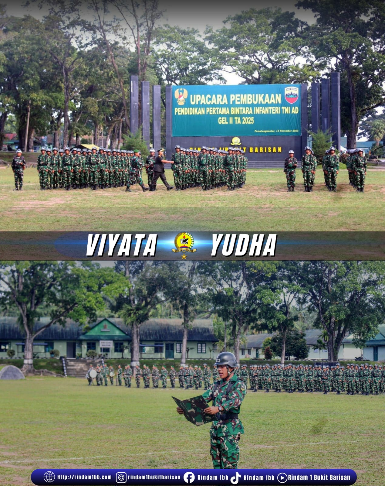 Pematangsiantar – Danrindam I/Bukit Barisan Brigjen TNI Abdul Razak Rangkuti, S.Sos., M.Han., M.Si., secara resmi membuka Pendidikan Pertama Bintara Infanteri TNI AD Gelombang II TA 2025, di Lapangan Jenderal Soedirman Rindam I/BB, Kamis (13/11/2025).